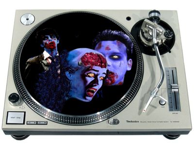 High quality felt turntable slipmat imprinted with an image of Zombie Invasion. The mat is regular thickness (3/32" or 2mm) and is sized to fit any 12 inch turntable. It is anti static, has a glazed bottom to grip and avoid slippage, feels great and works well for scratching or just playing your records. The image is impregnated into the surface of the mat, so it cannot scratch off or damage the record.