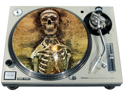 High quality felt turntable slipmat imprinted with an image of Skeleton 1. The mat is regular thickness (3/32" or 2mm) and is sized to fit any 12 inch turntable. It is anti static, has a glazed bottom to grip and avoid slippage, feels great and works well for scratching or just playing your records. The image is impregnated into the surface of the mat, so it cannot scratch off or damage the record.