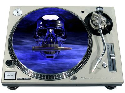 High quality felt turntable slipmat imprinted with an image of Skull Bullet Blue. The mat is regular thickness (3/32" or 2mm) and is sized to fit any 12 inch turntable. It is anti static, has a glazed bottom to grip and avoid slippage, feels great and works well for scratching or just playing your records. The image is impregnated into the surface of the mat, so it cannot scratch off or damage the record.