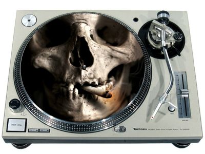 High quality felt turntable slipmat imprinted with an image of Skull Cigarrete. The mat is regular thickness (3/32" or 2mm) and is sized to fit any 12 inch turntable. It is anti static, has a glazed bottom to grip and avoid slippage, feels great and works well for scratching or just playing your records. The image is impregnated into the surface of the mat, so it cannot scratch off or damage the record.