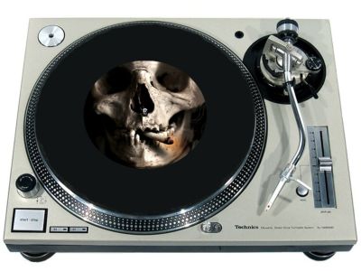 High quality felt turntable slipmat imprinted with an image of Skull Cigarrete. The mat is regular thickness (3/32" or 2mm) and is sized to fit any 7 inch turntable. It is anti static, has a glazed bottom to grip and avoid slippage, feels great and works well for scratching or just playing your records. The image is impregnated into the surface of the mat, so it cannot scratch off or damage the record.