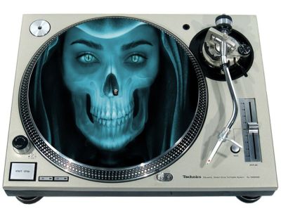 High quality felt turntable slipmat imprinted with an image of Skull Design 1. The mat is regular thickness (3/32" or 2mm) and is sized to fit any 12 inch turntable. It is anti static, has a glazed bottom to grip and avoid slippage, feels great and works well for scratching or just playing your records. The image is impregnated into the surface of the mat, so it cannot scratch off or damage the record.