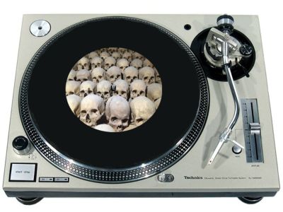 High quality felt turntable slipmat imprinted with an image of Skull Pile 1. The mat is regular thickness (3/32" or 2mm) and is sized to fit any 7 inch turntable. It is anti static, has a glazed bottom to grip and avoid slippage, feels great and works well for scratching or just playing your records. The image is impregnated into the surface of the mat, so it cannot scratch off or damage the record.