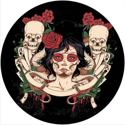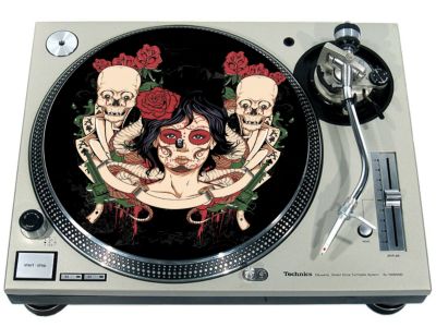 High quality felt turntable slipmat imprinted with an image of Skull Posse. The mat is regular thickness (3/32" or 2mm) and is sized to fit any 12 inch turntable. It is anti static, has a glazed bottom to grip and avoid slippage, feels great and works well for scratching or just playing your records. The image is impregnated into the surface of the mat, so it cannot scratch off or damage the record.