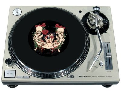 High quality felt turntable slipmat imprinted with an image of Skull Posse. The mat is regular thickness (3/32" or 2mm) and is sized to fit any 7 inch turntable. It is anti static, has a glazed bottom to grip and avoid slippage, feels great and works well for scratching or just playing your records. The image is impregnated into the surface of the mat, so it cannot scratch off or damage the record.