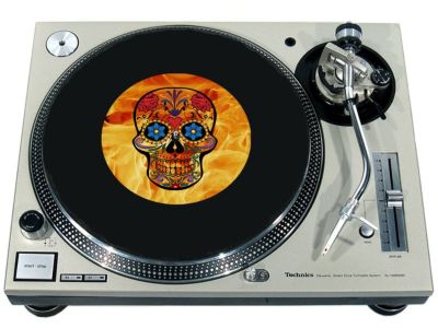 High quality felt turntable slipmat imprinted with an image of Skull Sugar Flames. The mat is regular thickness (3/32" or 2mm) and is sized to fit any 7 inch turntable. It is anti static, has a glazed bottom to grip and avoid slippage, feels great and works well for scratching or just playing your records. The image is impregnated into the surface of the mat, so it cannot scratch off or damage the record.