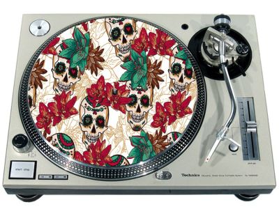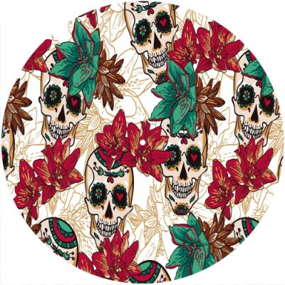 High quality felt turntable slipmat imprinted with an image of Skulls And Roses 2. The mat is regular thickness (3/32" or 2mm) and is sized to fit any 12 inch turntable. It is anti static, has a glazed bottom to grip and avoid slippage, feels great and works well for scratching or just playing your records. The image is impregnated into the surface of the mat, so it cannot scratch off or damage the record.
