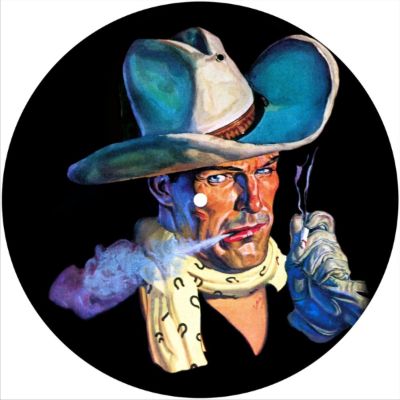High quality felt turntable slipmat imprinted with an image of Smokin Cowboy. The mat is regular thickness (3/32" or 2mm) and is sized to fit any 7 inch turntable. It is anti static, has a glazed bottom to grip and avoid slippage, feels great and works well for scratching or just playing your records. The image is impregnated into the surface of the mat, so it cannot scratch off or damage the record.