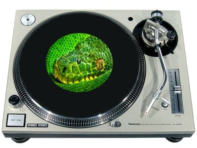 High quality felt turntable slipmat imprinted with an image of Snake GN. The mat is regular thickness (3/32" or 2mm) and is sized to fit any 7 inch turntable. It is anti static, has a glazed bottom to grip and avoid slippage, feels great and works well for scratching or just playing your records. The image is impregnated into the surface of the mat, so it cannot scratch off or damage the record.