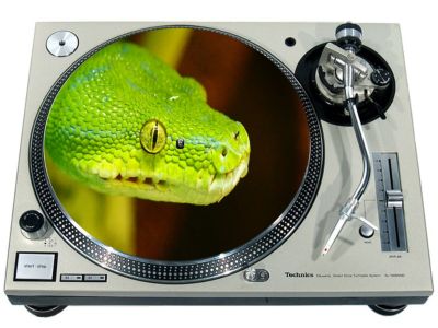 High quality felt turntable slipmat imprinted with an image of Snake Green 2. The mat is regular thickness (3/32" or 2mm) and is sized to fit any 12 inch turntable. It is anti static, has a glazed bottom to grip and avoid slippage, feels great and works well for scratching or just playing your records. The image is impregnated into the surface of the mat, so it cannot scratch off or damage the record.