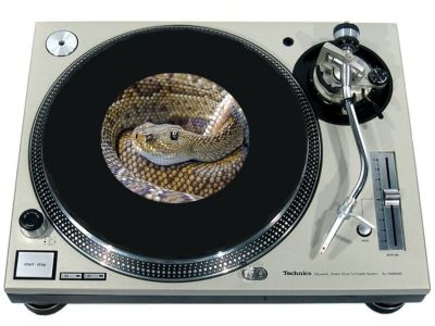 High quality felt turntable slipmat imprinted with an image of Snake Rattler. The mat is regular thickness (3/32" or 2mm) and is sized to fit any 7 inch turntable. It is anti static, has a glazed bottom to grip and avoid slippage, feels great and works well for scratching or just playing your records. The image is impregnated into the surface of the mat, so it cannot scratch off or damage the record.