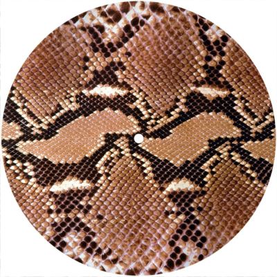 High quality felt turntable slipmat imprinted with an image of Snake Skin 2. The mat is regular thickness (3/32" or 2mm) and is sized to fit any 7 inch turntable. It is anti static, has a glazed bottom to grip and avoid slippage, feels great and works well for scratching or just playing your records. The image is impregnated into the surface of the mat, so it cannot scratch off or damage the record.
