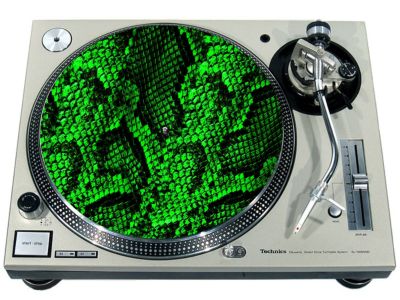 High quality felt turntable slipmat imprinted with an image of Snake Skin GR. The mat is regular thickness (3/32" or 2mm) and is sized to fit any 12 inch turntable. It is anti static, has a glazed bottom to grip and avoid slippage, feels great and works well for scratching or just playing your records. The image is impregnated into the surface of the mat, so it cannot scratch off or damage the record.