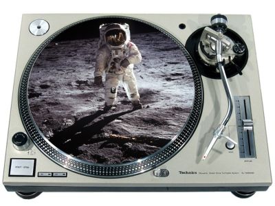High quality felt turntable slipmat imprinted with an image of Space Aldrin. The mat is regular thickness (3/32" or 2mm) and is sized to fit any 12 inch turntable. It is anti static, has a glazed bottom to grip and avoid slippage, feels great and works well for scratching or just playing your records. The image is impregnated into the surface of the mat, so it cannot scratch off or damage the record.