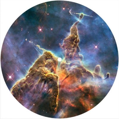 High quality felt turntable slipmat imprinted with an image of Space Carina Nebula. The mat is regular thickness (3/32" or 2mm) and is sized to fit any 7 inch turntable. It is anti static, has a glazed bottom to grip and avoid slippage, feels great and works well for scratching or just playing your records. The image is impregnated into the surface of the mat, so it cannot scratch off or damage the record.