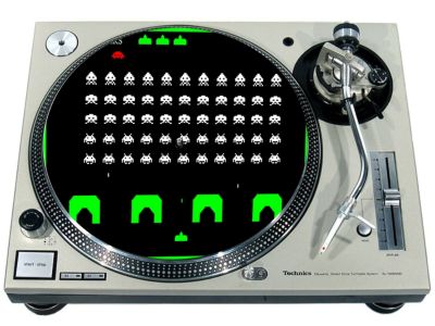 High quality felt turntable slipmat imprinted with an image of Space Invaders 1. The mat is regular thickness (3/32" or 2mm) and is sized to fit any 12 inch turntable. It is anti static, has a glazed bottom to grip and avoid slippage, feels great and works well for scratching or just playing your records. The image is impregnated into the surface of the mat, so it cannot scratch off or damage the record.