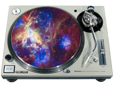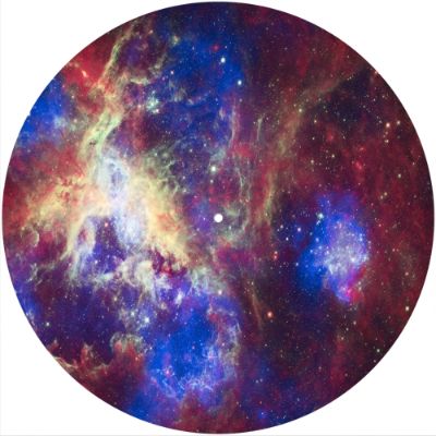 High quality felt turntable slipmat imprinted with an image of Space Tarantula Nebula. The mat is regular thickness (3/32" or 2mm) and is sized to fit any 12 inch turntable. It is anti static, has a glazed bottom to grip and avoid slippage, feels great and works well for scratching or just playing your records. The image is impregnated into the surface of the mat, so it cannot scratch off or damage the record.