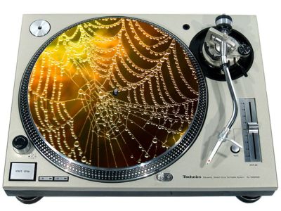 High quality felt turntable slipmat imprinted with an image of Spider Web Wet 2. The mat is regular thickness (3/32" or 2mm) and is sized to fit any 12 inch turntable. It is anti static, has a glazed bottom to grip and avoid slippage, feels great and works well for scratching or just playing your records. The image is impregnated into the surface of the mat, so it cannot scratch off or damage the record.