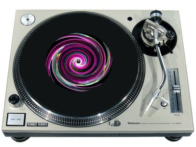 High quality felt turntable slipmat imprinted with an image of Spiral 4. The mat is regular thickness (3/32" or 2mm) and is sized to fit any 7 inch turntable. It is anti static, has a glazed bottom to grip and avoid slippage, feels great and works well for scratching or just playing your records. The image is impregnated into the surface of the mat, so it cannot scratch off or damage the record.
