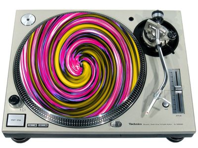 High quality felt turntable slipmat imprinted with an image of Spiral 7. The mat is regular thickness (3/32" or 2mm) and is sized to fit any 12 inch turntable. It is anti static, has a glazed bottom to grip and avoid slippage, feels great and works well for scratching or just playing your records. The image is impregnated into the surface of the mat, so it cannot scratch off or damage the record.