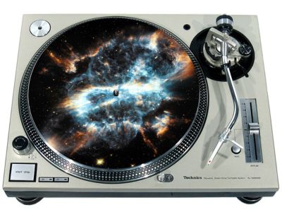 High quality felt turntable slipmat imprinted with an image of Spiral Planetary Nebula. The mat is regular thickness (3/32" or 2mm) and is sized to fit any 12 inch turntable. It is anti static, has a glazed bottom to grip and avoid slippage, feels great and works well for scratching or just playing your records. The image is impregnated into the surface of the mat, so it cannot scratch off or damage the record.