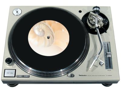 High quality felt turntable slipmat imprinted with an image of Spiral Shell 1. The mat is regular thickness (3/32" or 2mm) and is sized to fit any 7 inch turntable. It is anti static, has a glazed bottom to grip and avoid slippage, feels great and works well for scratching or just playing your records. The image is impregnated into the surface of the mat, so it cannot scratch off or damage the record.