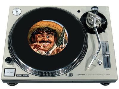 High quality felt turntable slipmat imprinted with an image of Bandito 1. The mat is regular thickness (3/32" or 2mm) and is sized to fit any 7 inch turntable. It is anti static, has a glazed bottom to grip and avoid slippage, feels great and works well for scratching or just playing your records. The image is impregnated into the surface of the mat, so it cannot scratch off or damage the record.