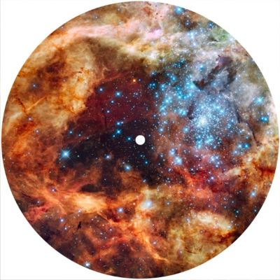 High quality felt turntable slipmat imprinted with an image of Star Cluster 2. The mat is regular thickness (3/32" or 2mm) and is sized to fit any 7 inch turntable. It is anti static, has a glazed bottom to grip and avoid slippage, feels great and works well for scratching or just playing your records. The image is impregnated into the surface of the mat, so it cannot scratch off or damage the record.