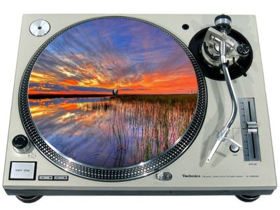 High quality felt turntable slipmat imprinted with an image of Sunset 2. The mat is regular thickness (3/32" or 2mm) and is sized to fit any 12 inch turntable. It is anti static, has a glazed bottom to grip and avoid slippage, feels great and works well for scratching or just playing your records. The image is impregnated into the surface of the mat, so it cannot scratch off or damage the record.