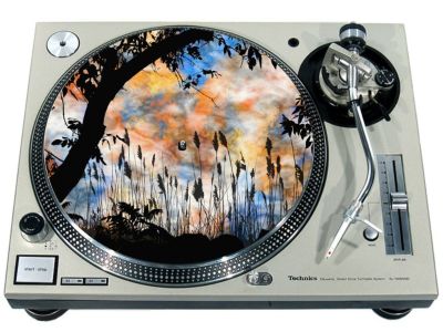 High quality felt turntable slipmat imprinted with an image of Sunset Silhoutte. The mat is regular thickness (3/32" or 2mm) and is sized to fit any 12 inch turntable. It is anti static, has a glazed bottom to grip and avoid slippage, feels great and works well for scratching or just playing your records. The image is impregnated into the surface of the mat, so it cannot scratch off or damage the record.
