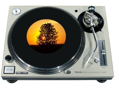 High quality felt turntable slipmat imprinted with an image of Sunset Tree 2. The mat is regular thickness (3/32" or 2mm) and is sized to fit any 7 inch turntable. It is anti static, has a glazed bottom to grip and avoid slippage, feels great and works well for scratching or just playing your records. The image is impregnated into the surface of the mat, so it cannot scratch off or damage the record.