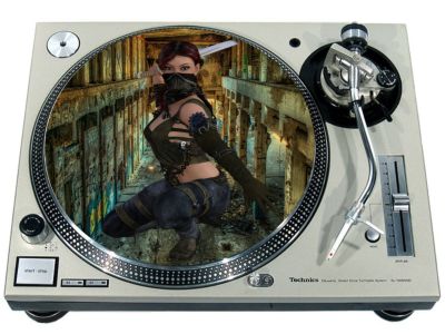 High quality felt turntable slipmat imprinted with an image of Battle Queen 3. The mat is regular thickness (3/32" or 2mm) and is sized to fit any 12 inch turntable. It is anti static, has a glazed bottom to grip and avoid slippage, feels great and works well for scratching or just playing your records. The image is impregnated into the surface of the mat, so it cannot scratch off or damage the record.