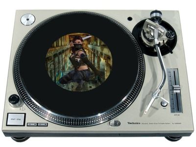 High quality felt turntable slipmat imprinted with an image of Battle Queen 3. The mat is regular thickness (3/32" or 2mm) and is sized to fit any 7 inch turntable. It is anti static, has a glazed bottom to grip and avoid slippage, feels great and works well for scratching or just playing your records. The image is impregnated into the surface of the mat, so it cannot scratch off or damage the record.