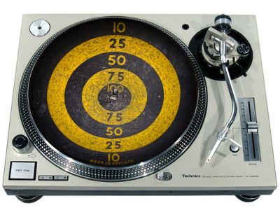 High quality felt turntable slipmat imprinted with an image of Target 1. The mat is regular thickness (3/32" or 2mm) and is sized to fit any 12 inch turntable. It is anti static, has a glazed bottom to grip and avoid slippage, feels great and works well for scratching or just playing your records. The image is impregnated into the surface of the mat, so it cannot scratch off or damage the record.