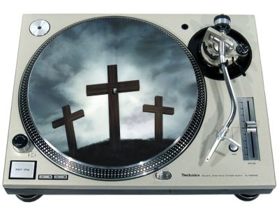 High quality felt turntable slipmat imprinted with an image of Three Crosses. The mat is regular thickness (3/32" or 2mm) and is sized to fit any 12 inch turntable. It is anti static, has a glazed bottom to grip and avoid slippage, feels great and works well for scratching or just playing your records. The image is impregnated into the surface of the mat, so it cannot scratch off or damage the record.