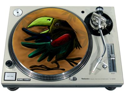 High quality felt turntable slipmat imprinted with an image of Tikki Bird 1. The mat is regular thickness (3/32" or 2mm) and is sized to fit any 12 inch turntable. It is anti static, has a glazed bottom to grip and avoid slippage, feels great and works well for scratching or just playing your records. The image is impregnated into the surface of the mat, so it cannot scratch off or damage the record.