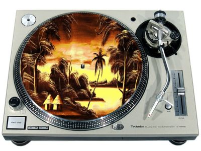 High quality felt turntable slipmat imprinted with an image of Tikki Huts Sunset. The mat is regular thickness (3/32" or 2mm) and is sized to fit any 12 inch turntable. It is anti static, has a glazed bottom to grip and avoid slippage, feels great and works well for scratching or just playing your records. The image is impregnated into the surface of the mat, so it cannot scratch off or damage the record.