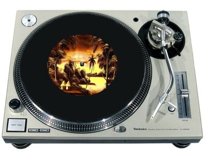 High quality felt turntable slipmat imprinted with an image of Tikki Huts Sunset. The mat is regular thickness (3/32" or 2mm) and is sized to fit any 7 inch turntable. It is anti static, has a glazed bottom to grip and avoid slippage, feels great and works well for scratching or just playing your records. The image is impregnated into the surface of the mat, so it cannot scratch off or damage the record.