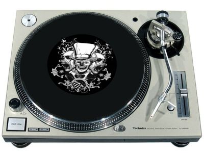 High quality felt turntable slipmat imprinted with an image of Top Hat Skull. The mat is regular thickness (3/32" or 2mm) and is sized to fit any 7 inch turntable. It is anti static, has a glazed bottom to grip and avoid slippage, feels great and works well for scratching or just playing your records. The image is impregnated into the surface of the mat, so it cannot scratch off or damage the record.