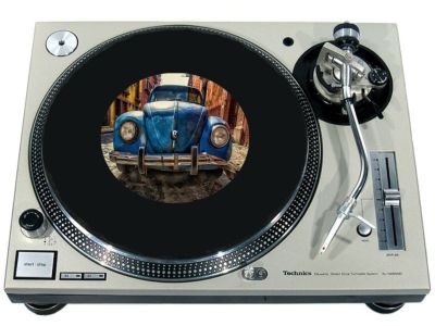 High quality felt turntable slipmat imprinted with an image of Bent Up Bug. The mat is regular thickness (3/32" or 2mm) and is sized to fit any 7 inch turntable. It is anti static, has a glazed bottom to grip and avoid slippage, feels great and works well for scratching or just playing your records. The image is impregnated into the surface of the mat, so it cannot scratch off or damage the record.