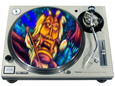 High quality felt turntable slipmat imprinted with an image of Tribal Warrior 1. The mat is regular thickness (3/32" or 2mm) and is sized to fit any 12 inch turntable. It is anti static, has a glazed bottom to grip and avoid slippage, feels great and works well for scratching or just playing your records. The image is impregnated into the surface of the mat, so it cannot scratch off or damage the record.