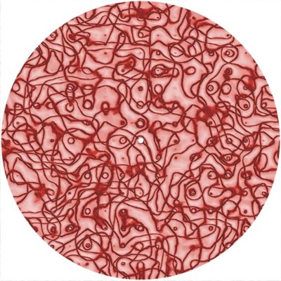 High quality felt turntable slipmat imprinted with an image of Twine Red. The mat is regular thickness (3/32" or 2mm) and is sized to fit any 12 inch turntable. It is anti static, has a glazed bottom to grip and avoid slippage, feels great and works well for scratching or just playing your records. The image is impregnated into the surface of the mat, so it cannot scratch off or damage the record.