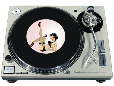 High quality felt turntable slipmat imprinted with an image of Bikini Girl 2. The mat is regular thickness (3/32" or 2mm) and is sized to fit any 7 inch turntable. It is anti static, has a glazed bottom to grip and avoid slippage, feels great and works well for scratching or just playing your records. The image is impregnated into the surface of the mat, so it cannot scratch off or damage the record.