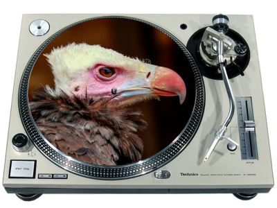 High quality felt turntable slipmat imprinted with an image of Vulture 2. The mat is regular thickness (3/32" or 2mm) and is sized to fit any 12 inch turntable. It is anti static, has a glazed bottom to grip and avoid slippage, feels great and works well for scratching or just playing your records. The image is impregnated into the surface of the mat, so it cannot scratch off or damage the record.
