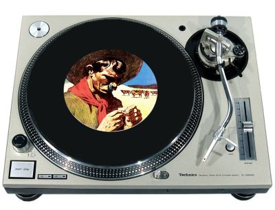 High quality felt turntable slipmat imprinted with an image of Wild West 1. The mat is regular thickness (3/32" or 2mm) and is sized to fit any 7 inch turntable. It is anti static, has a glazed bottom to grip and avoid slippage, feels great and works well for scratching or just playing your records. The image is impregnated into the surface of the mat, so it cannot scratch off or damage the record.