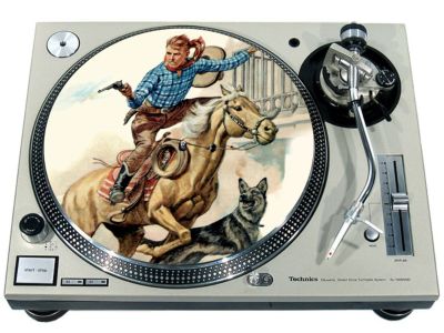 High quality felt turntable slipmat imprinted with an image of Wild West 3. The mat is regular thickness (3/32" or 2mm) and is sized to fit any 12 inch turntable. It is anti static, has a glazed bottom to grip and avoid slippage, feels great and works well for scratching or just playing your records. The image is impregnated into the surface of the mat, so it cannot scratch off or damage the record.