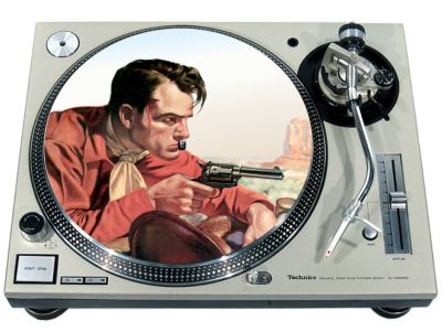 High quality felt turntable slipmat imprinted with an image of Wild West 9. The mat is regular thickness (3/32" or 2mm) and is sized to fit any 12 inch turntable. It is anti static, has a glazed bottom to grip and avoid slippage, feels great and works well for scratching or just playing your records. The image is impregnated into the surface of the mat, so it cannot scratch off or damage the record.