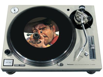 High quality felt turntable slipmat imprinted with an image of Wild West 17. The mat is regular thickness (3/32" or 2mm) and is sized to fit any 7 inch turntable. It is anti static, has a glazed bottom to grip and avoid slippage, feels great and works well for scratching or just playing your records. The image is impregnated into the surface of the mat, so it cannot scratch off or damage the record.
