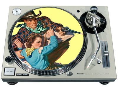 High quality felt turntable slipmat imprinted with an image of Wild West 31. The mat is regular thickness (3/32" or 2mm) and is sized to fit any 12 inch turntable. It is anti static, has a glazed bottom to grip and avoid slippage, feels great and works well for scratching or just playing your records. The image is impregnated into the surface of the mat, so it cannot scratch off or damage the record.