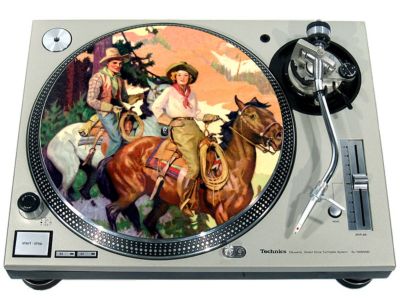 High quality felt turntable slipmat imprinted with an image of Wild West 52. The mat is regular thickness (3/32" or 2mm) and is sized to fit any 12 inch turntable. It is anti static, has a glazed bottom to grip and avoid slippage, feels great and works well for scratching or just playing your records. The image is impregnated into the surface of the mat, so it cannot scratch off or damage the record.
